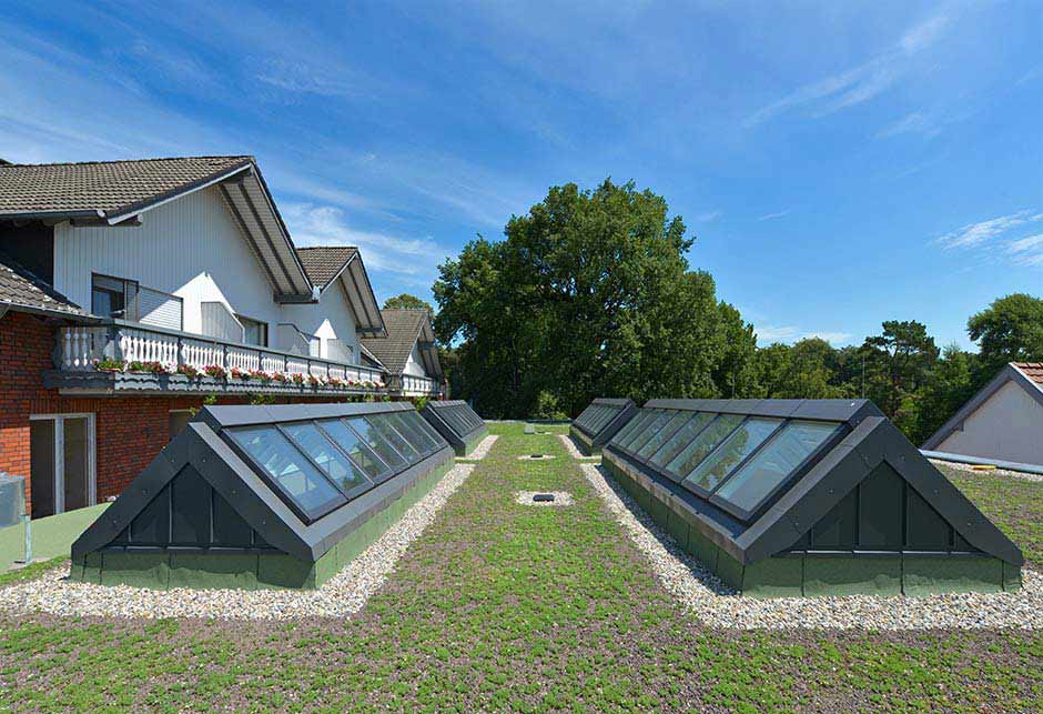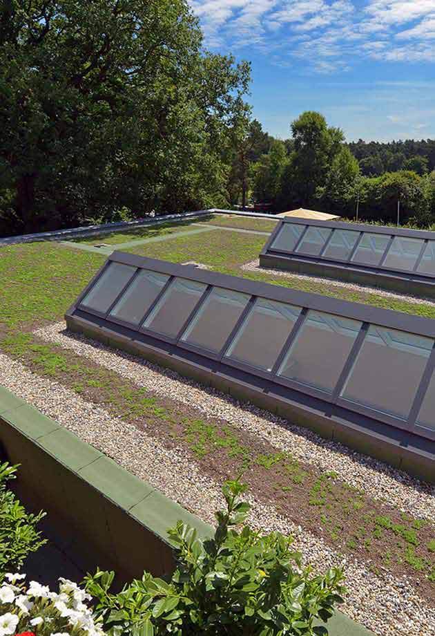 - Zrównoważone warunki oświetleniowe zmniejszają zapotrzebowanie na sztuczne światło, a ciepłe promienie słoneczne wpadające przez świetliki zmniejszają zapotrzebowanie na ogrzewanie w miesiącach zimowych.