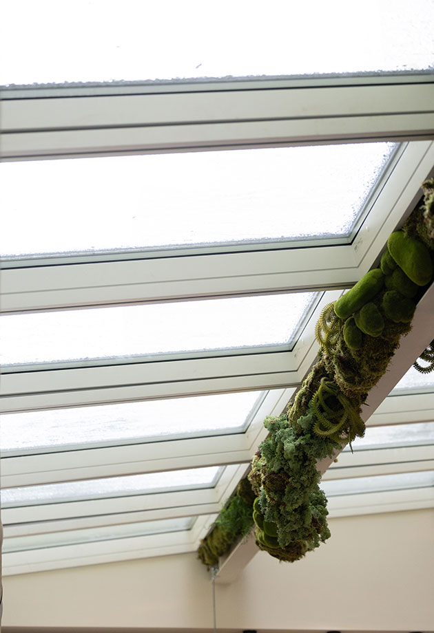 Integralnym elementem aranżacji restauracji jest szklany dach z możliwością otwierania, który pozwala gościom na wyjątkowe doświadczenie – kolację pod rozgwieżdżonym niebem. Dach ten pełni funkcję zadaszenia dla atrium kamienicy, tworząc jednocześnie przestrzeń, gdzie pod świetlikiem ustawiono dodatkowe stoliki, znacząco powiększając powierzchnię restauracyjną. Dzięki zastosowaniu modułowych świetlików VELUX Commercial, o konstrukcji jednospadowej dostosowanej do szerokości otworu 2800 mm, przestrzeń jest doskonale doświetlona naturalnym światłem, co podnosi komfort zarówno gości, jak i personelu. System ten został wyposażony w sześć otwieranych klap wentylacyjnych, które umożliwiają efektywną wymianę powietrza i naturalne przewietrzanie pomieszczenia.